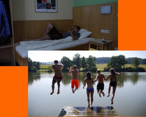 Weil noch etwas Zeit bis zum Mittagessen bleibt, geht es erstmal ab in den Badeteich :) Geschwitzt wird die restlichen Tage ohnedies genug.