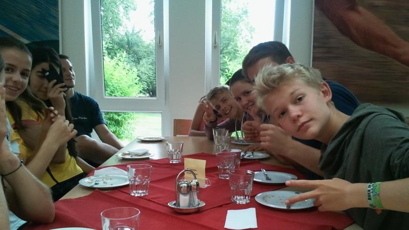 Weil noch etwas Zeit bis zum Mittagessen bleibt, geht es erstmal ab in den Badeteich :) Geschwitzt wird die restlichen Tage ohnedies genug.